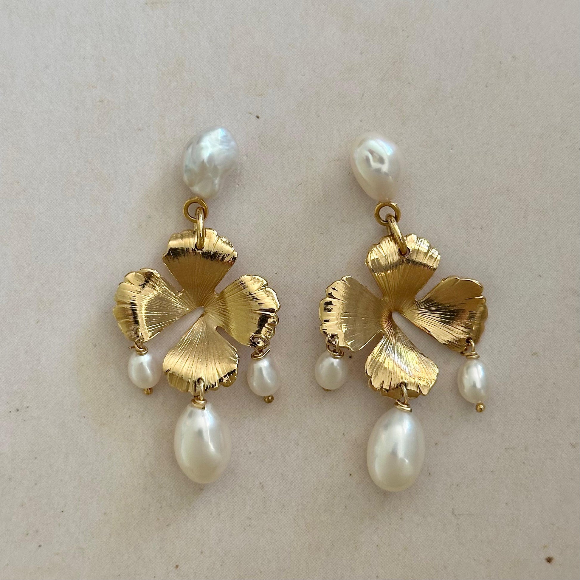 Aros de perlas naturales, bañados en oro de 24 kilates por artesanos de Chanel.