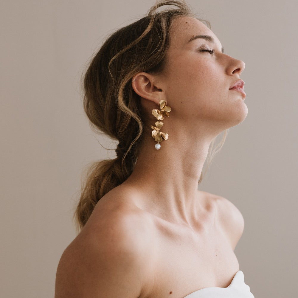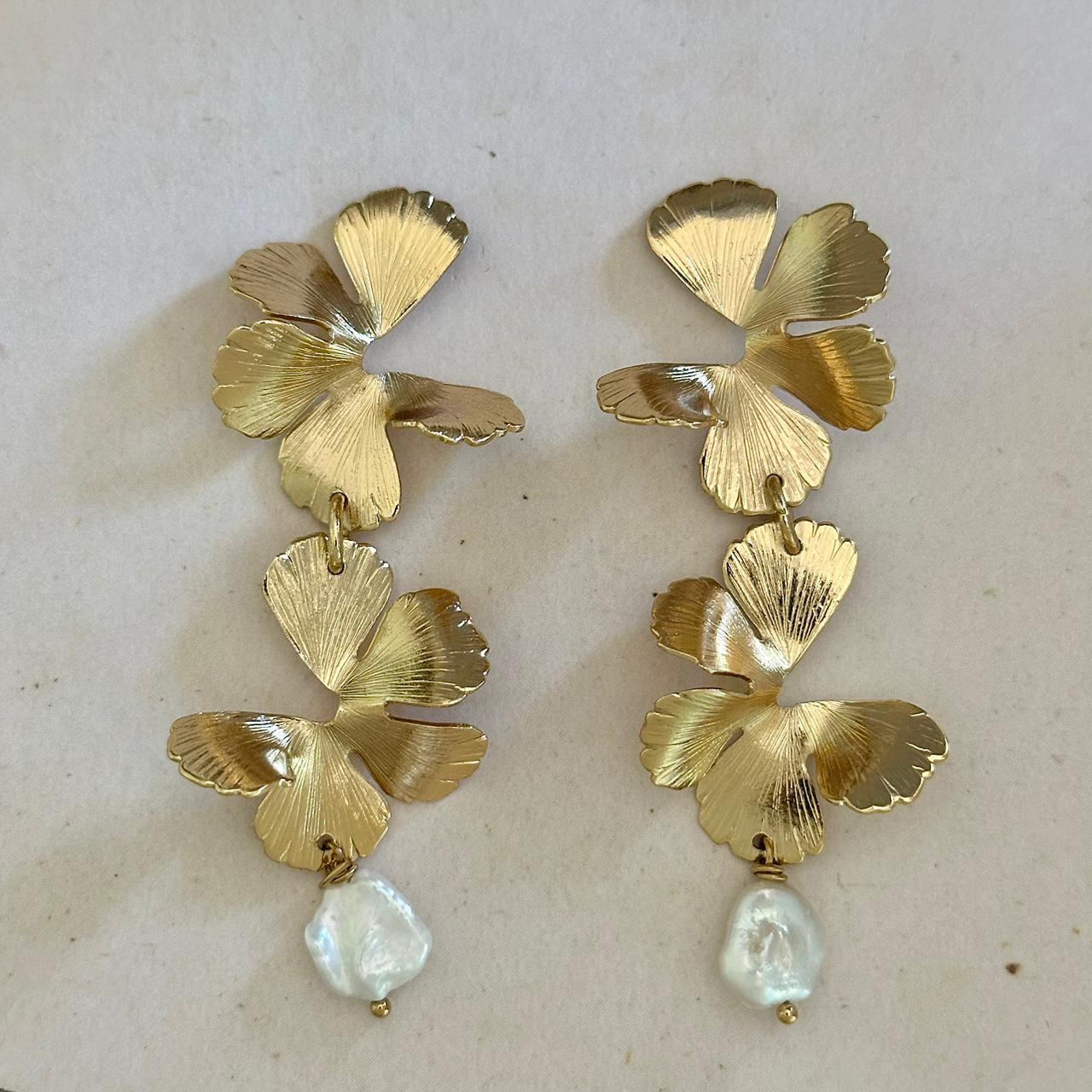 Aros con perlitas naturales, bañados en oro de 24 kilates por artesanos de Chanel.