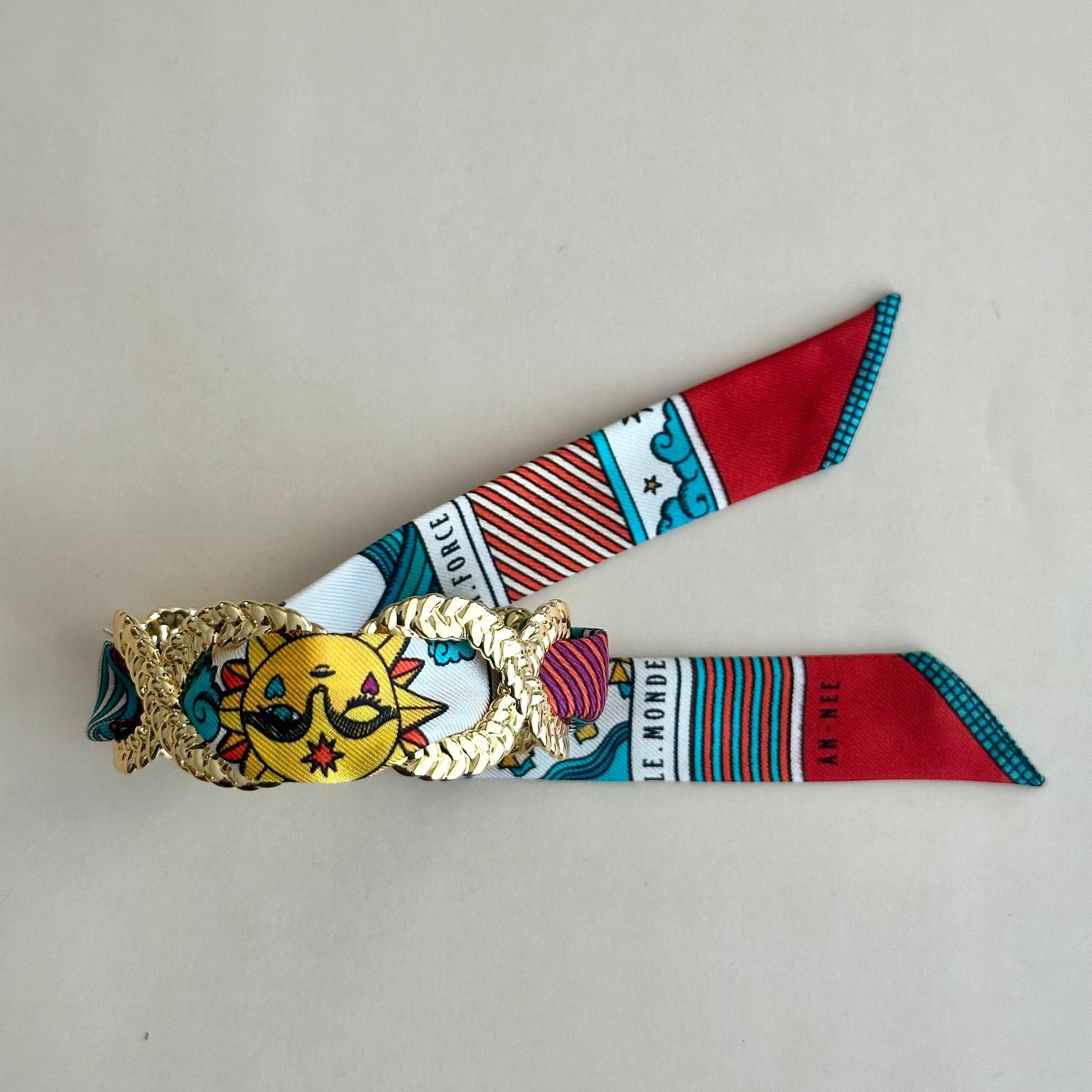 Esclava bañada en oro 18k y pañuelo de seda desmontable.