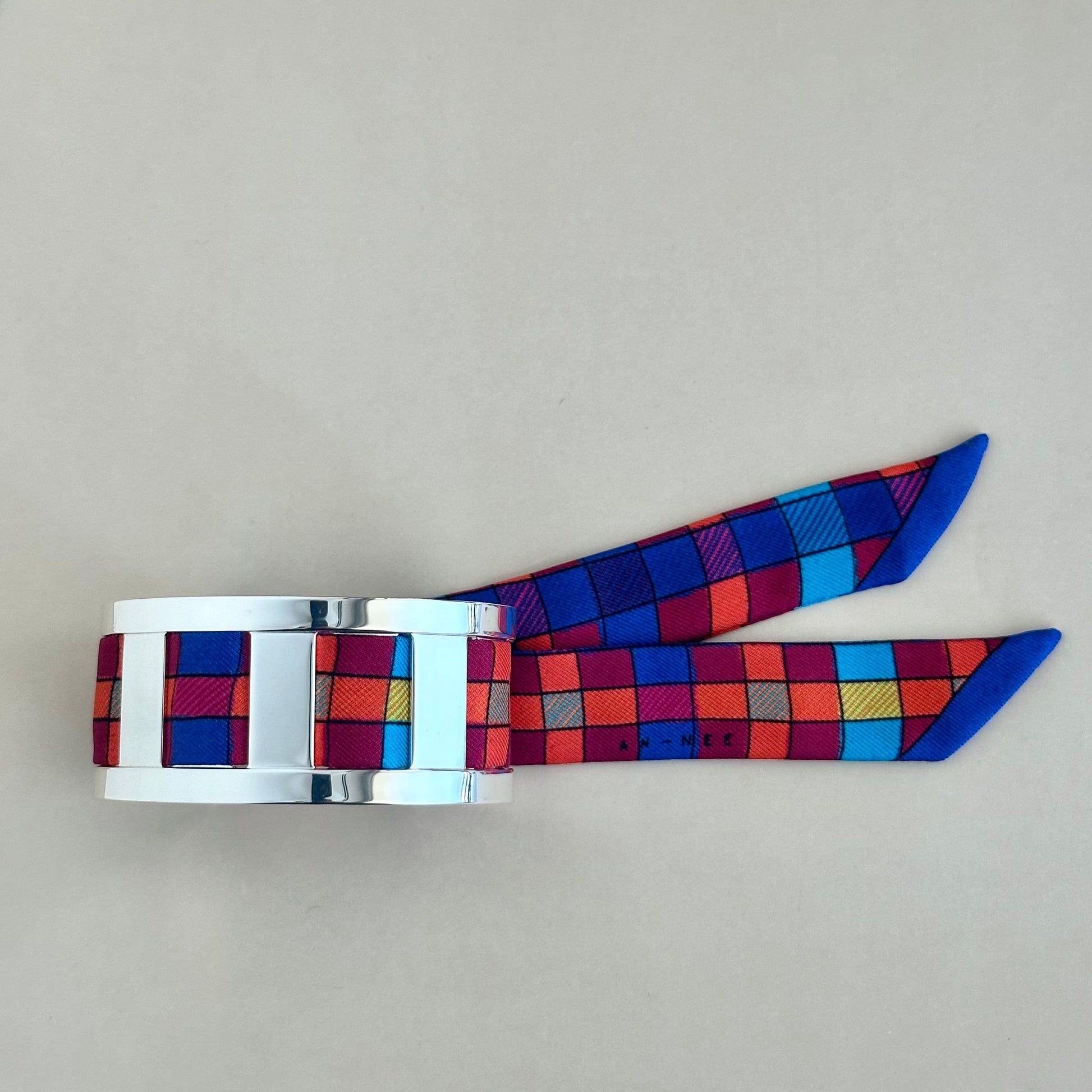 Esclava bañada en plata y pañuelo de seda desmontable.