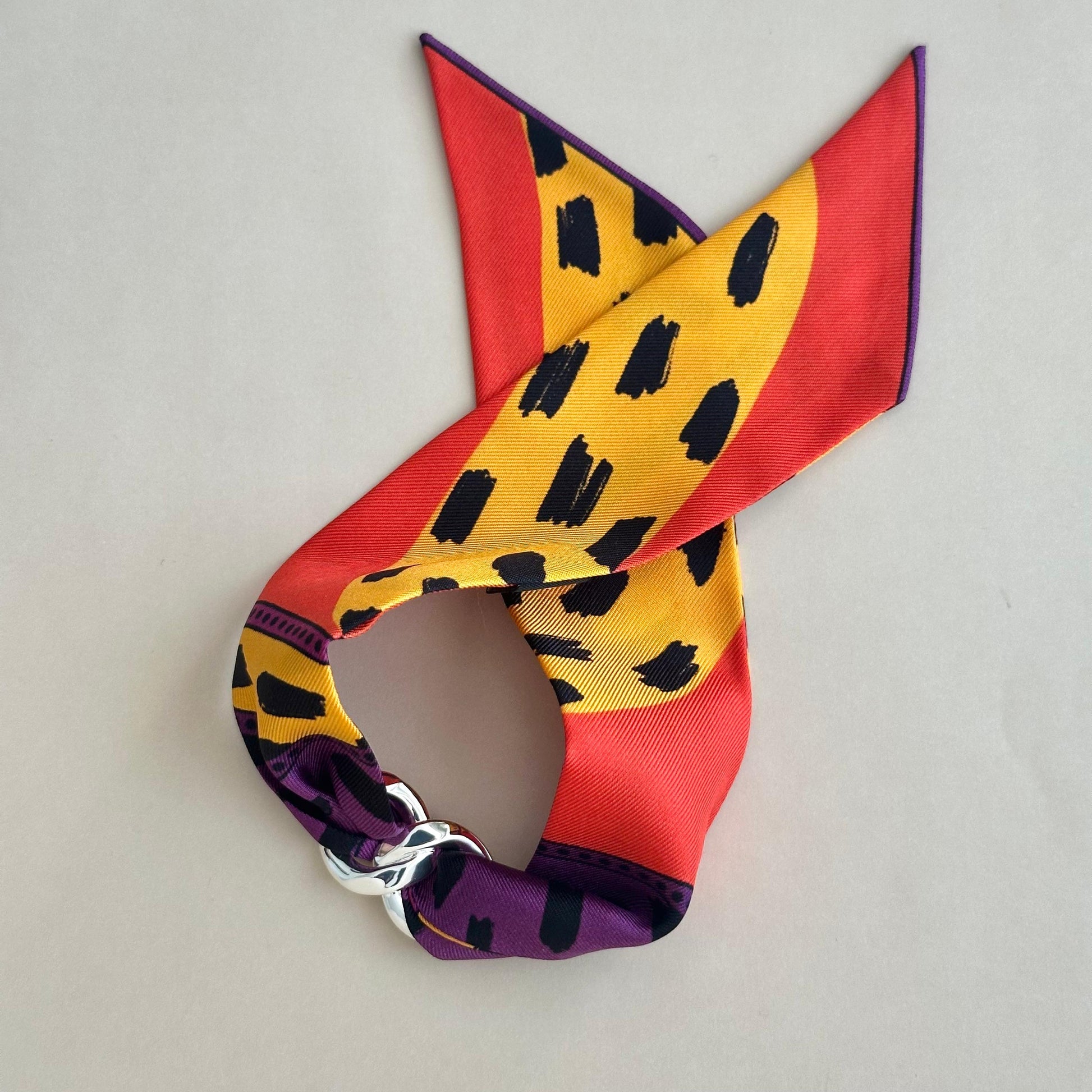 Pulsera pañuelo de seda y accesorio bañado en plata.
