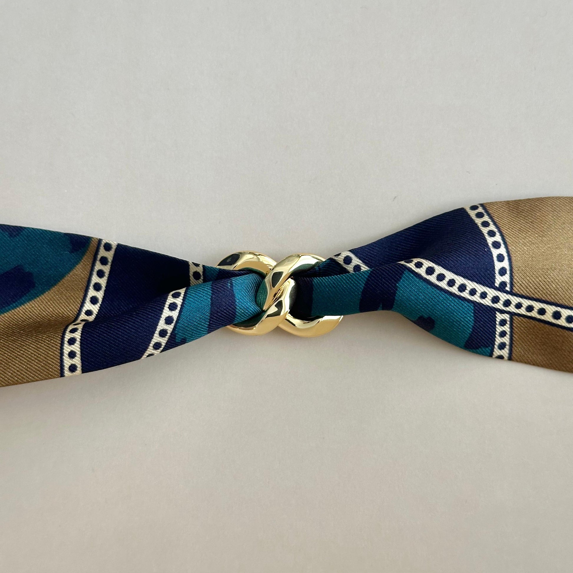 Pulsera pañuelo de seda y accesorio bañado en oro 18k.